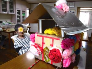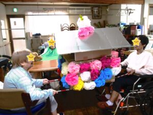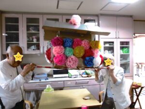 こころ1Fでは 手作りの神輿を持って ワッショイ・ワッショイと
