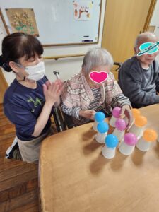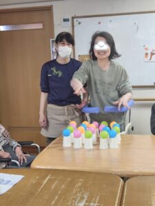 (先程の方に指名されたのはこちらの利用者様!「上手にできないかもよ?」と控えめな発言をされています!)
