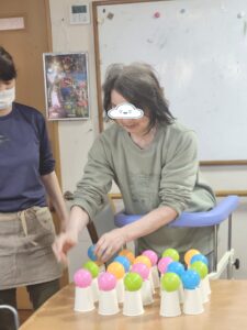 (先程の方に指名されたのはこちらの利用者様!「上手にできないかもよ?」と控えめな発言をされています!)