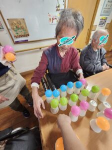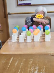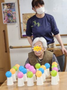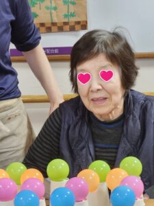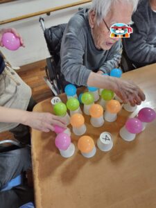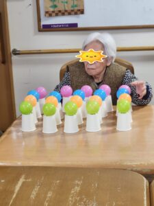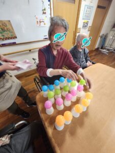 (即決で指名を受けたこちらの女性利用者様は、どの色のボールをどの順番に並べるかを考えていました!)