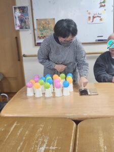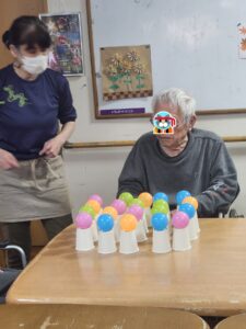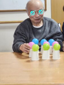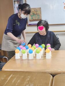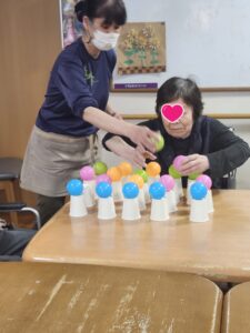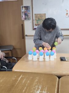 (繊細で細やかなことが得意な利用者様らしく、慎重な手でボールを並べていました。)