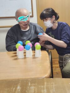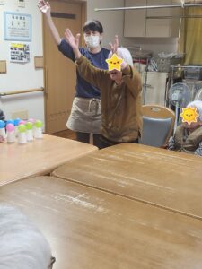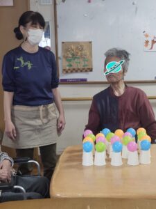 (次に指名されたのは男性利用者様!「誰かが一緒にやってくれたらできるかもしれん」とのこと!お任せください!!)