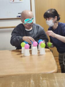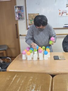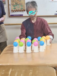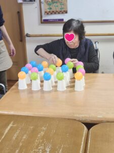 (繊細で細やかなことが得意な利用者様らしく、慎重な手でボールを並べていました。)