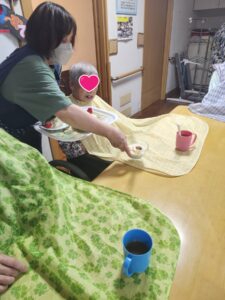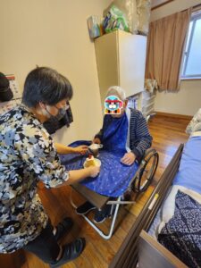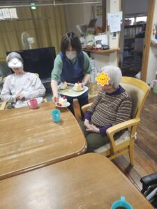 (こちらの利用者様もケーキを見て「ええなぁ、おいしそうやわい」と言ってくれました。)