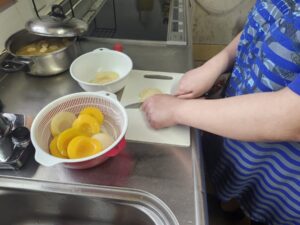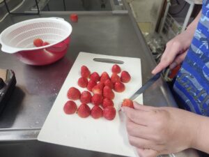 (微力ながら私もケーキ用のフルーツをサクっと切っていきます!)