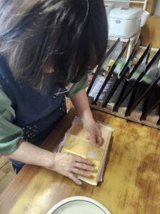 (メジャーでスポンジを採寸しながら、いい感じの大きさになるよう調整する職員B!)