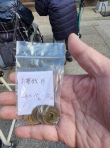 (職員Bから預かったお賽銭です!お賽銭には五円玉がデフォルトですね!)