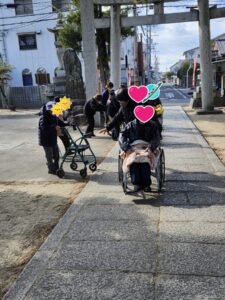 (こちらの女性利用者様は「しっかり鳥居をくぐりたい!」とのこと。大きな鳥居をくぐっています。)