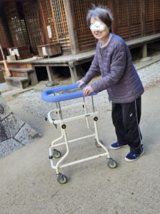 (こちらの女性利用者様は「しっかり鳥居をくぐりたい!」とのこと。大きな鳥居をくぐっています。)