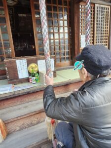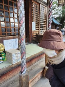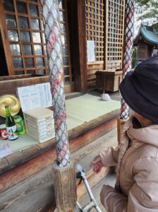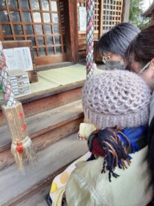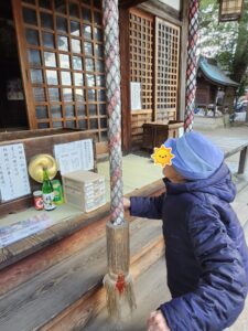 (お賽銭を入れて両手を合わせています。ちょっと恥ずかしそうにされていました。)