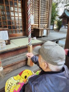 (お賽銭をいれて、満面の笑みでお参りをされています。とっても嬉しそうです!)