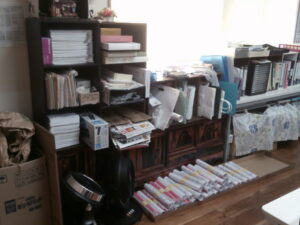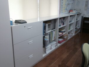 今までは、創業当時から 長テーブルの上に三段ボックスを並べてファイルを保管していました。